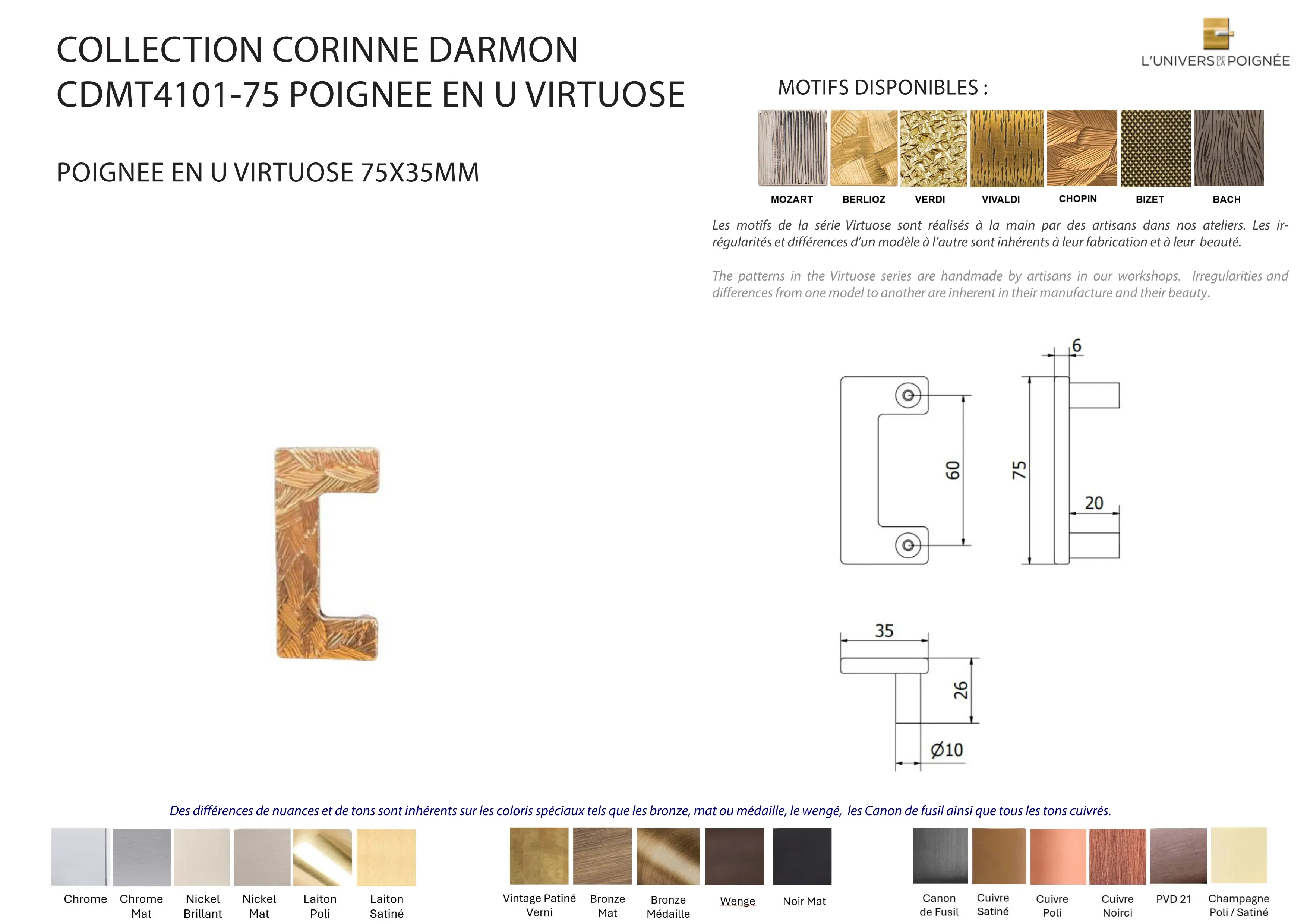 Poignée de tirage en U VIRTUOSE 75mm