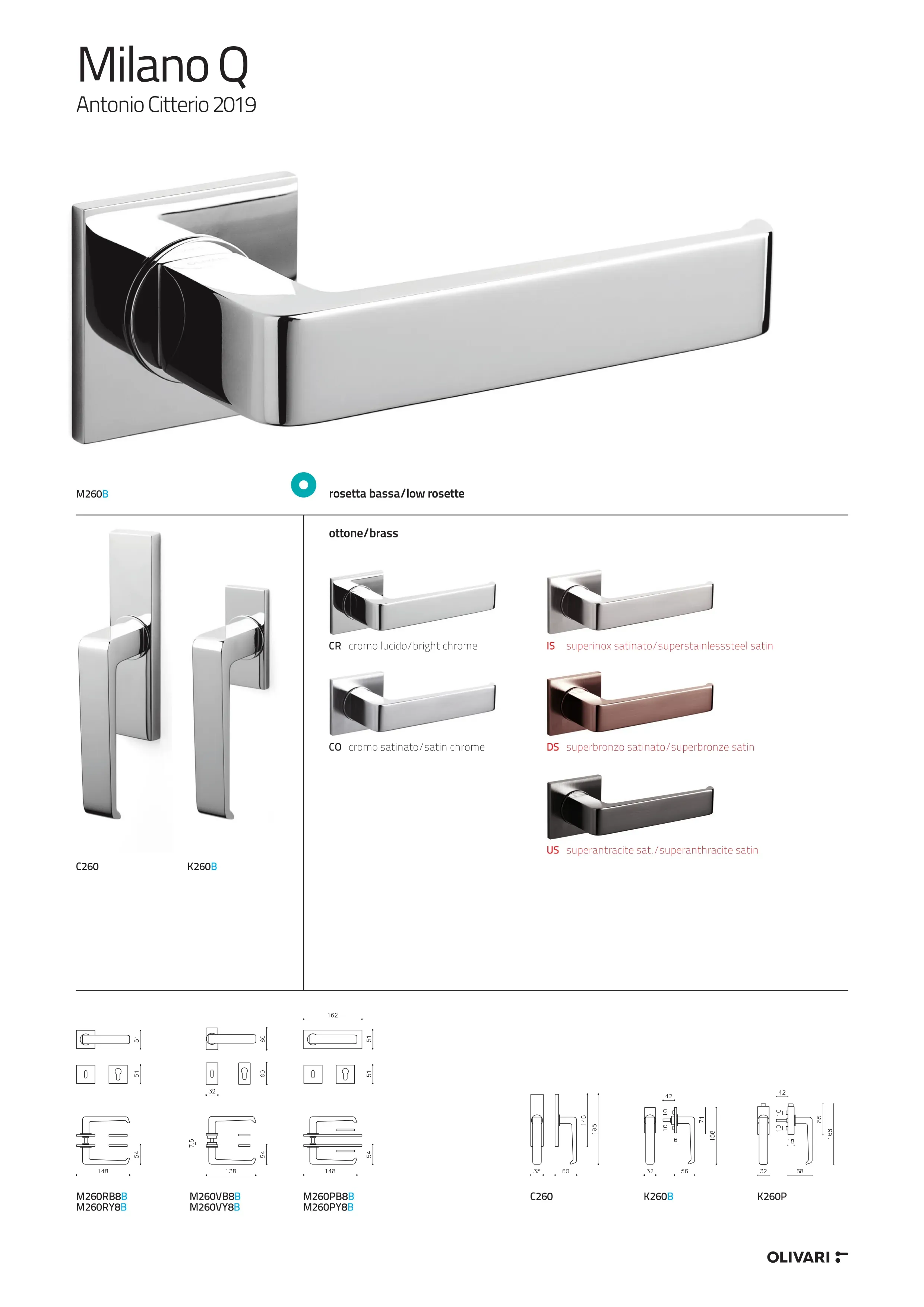 Poignée de porte MILANO Q rosace carrée